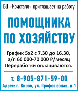 Предлагаем вам ознакомиться со свежими вакансиями и предложениями о работе в Кирове.